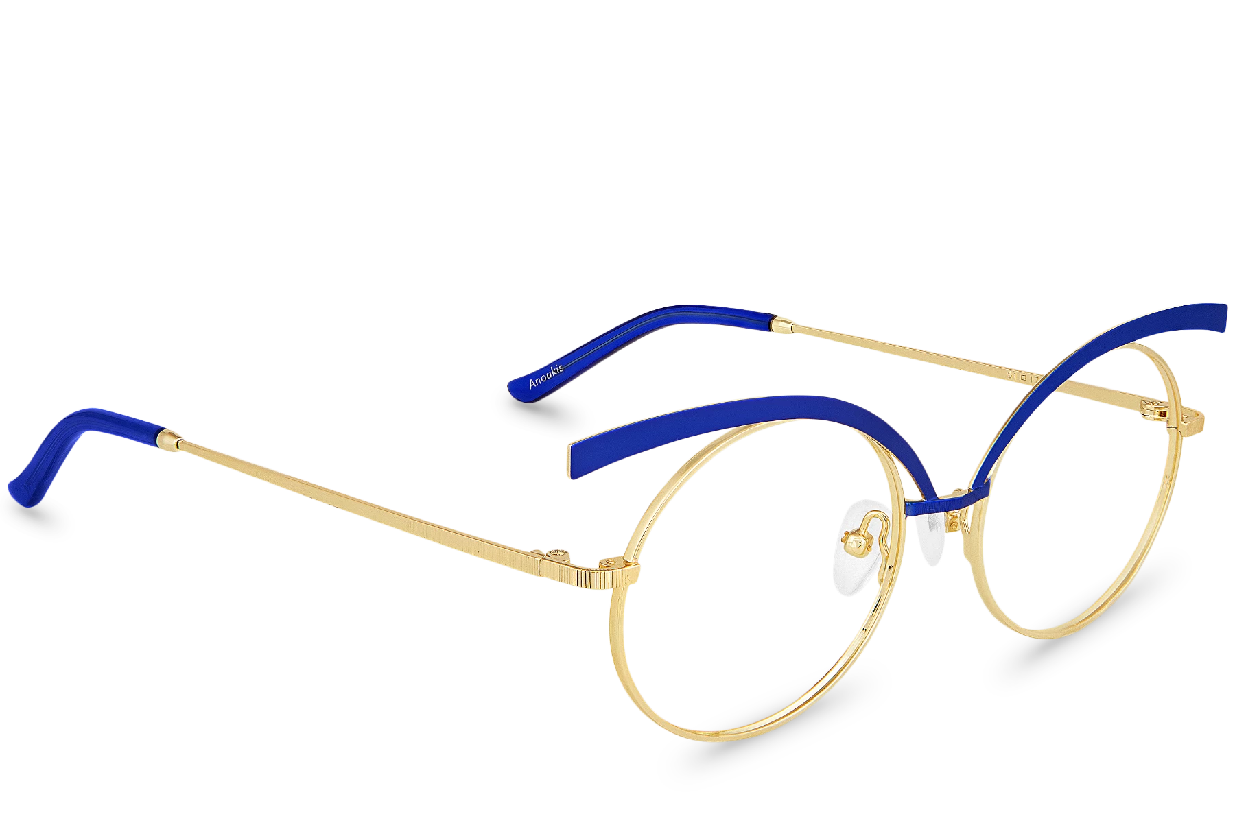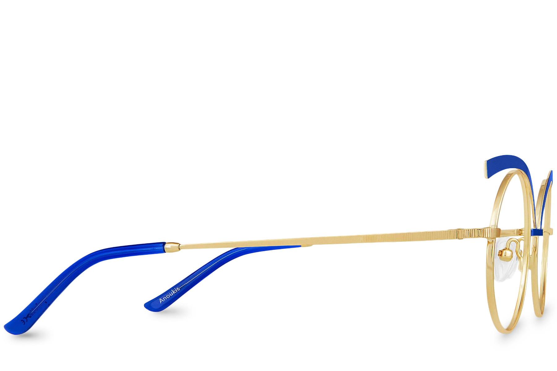 Blue was the color used to represent the Egyptian gods. Thus, highlight your eyes with the powerful tints of Anoukis View Blue. This pair of oval glasses designed in gold metal will make your eyes stand out. Cosmic!