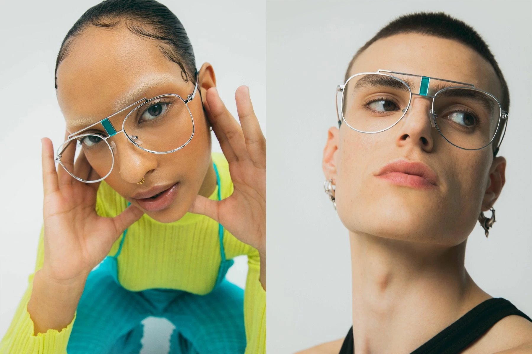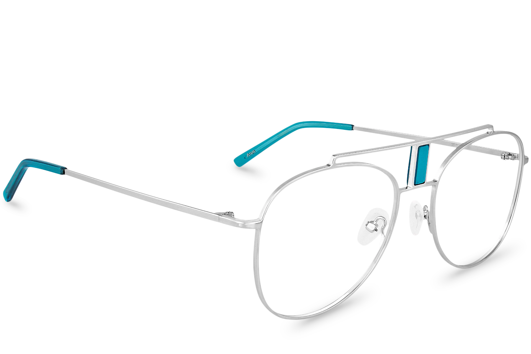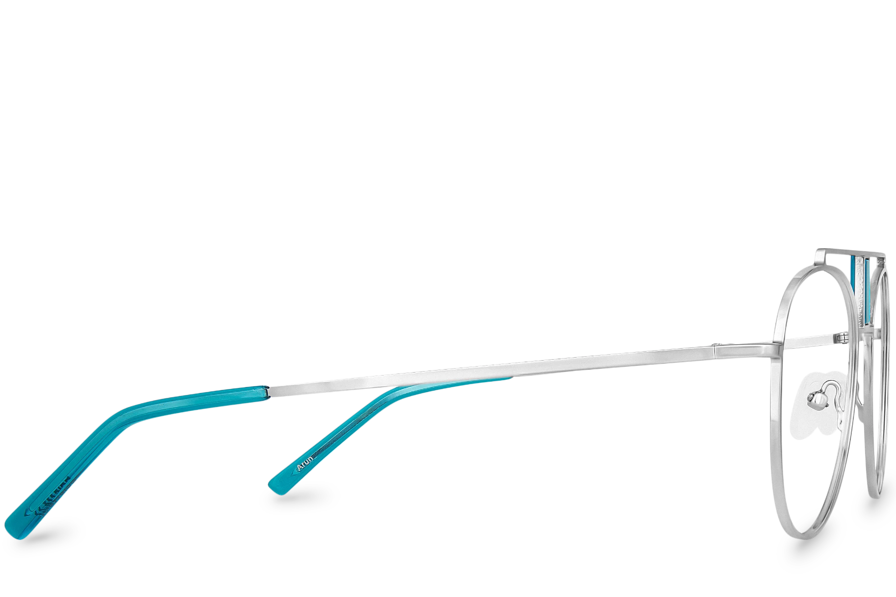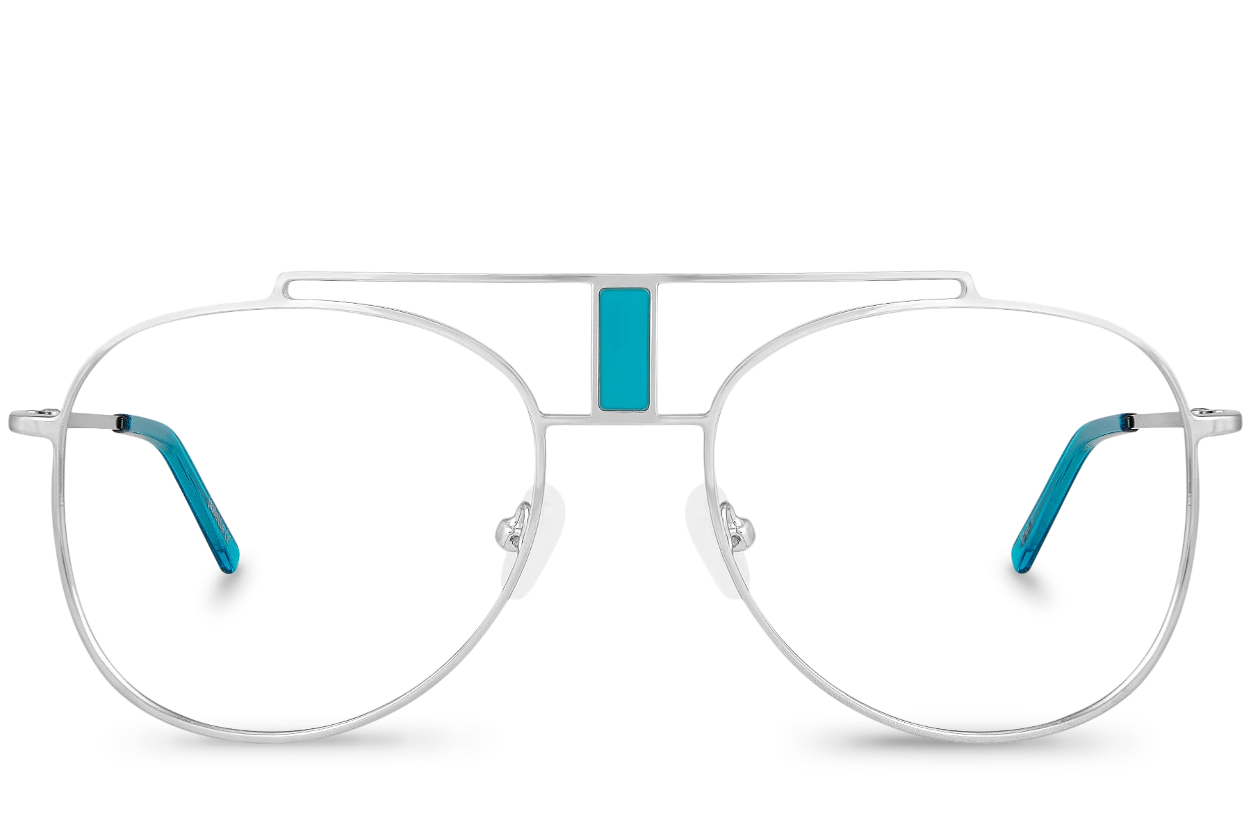 polette presents you the brand new jewel of its collection! Arun View Blue is an aviator pair of glasses made of silver metal and equipped with a double-bridge decorated with turquoise blue insert! The opportunity for you to shine!