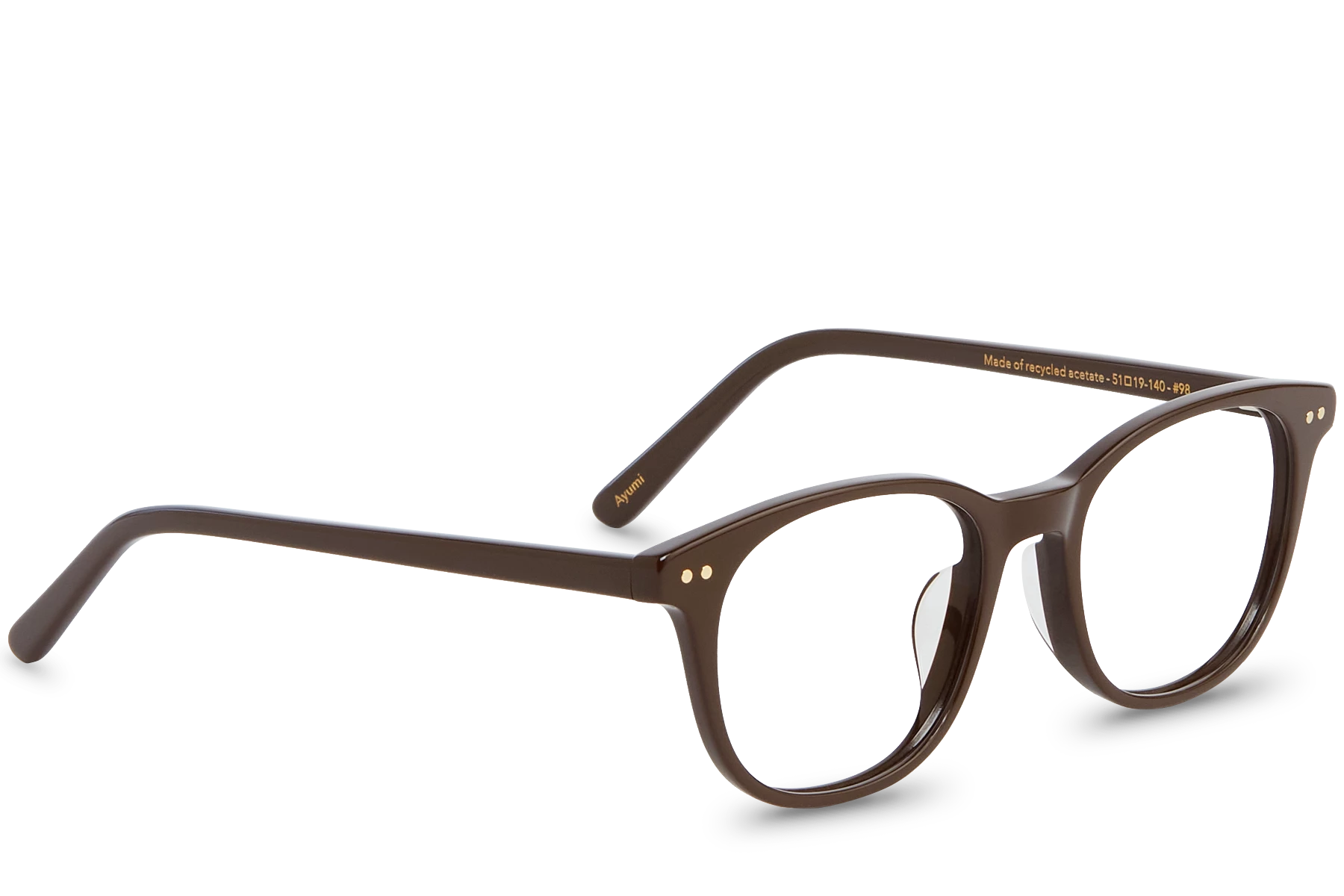 Adored with finely designed metal details, this classic model has beautiful rectangular shapes. Ayumi also has higher acetate nose pads which ensure the frame stays comfortably on your nose! Superb!