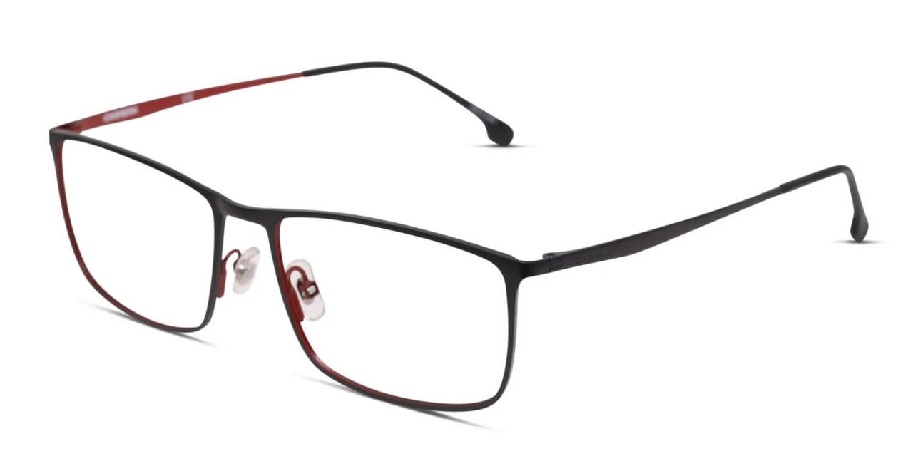 The Carrera 8857 is a stylish and sporty rectangular frame built for all-day durability and comfort. Crafted from lightweight and durable titanium, it features a sleek hue, elegant brand detailing, and adjustable nose pads for a comfortable fit.