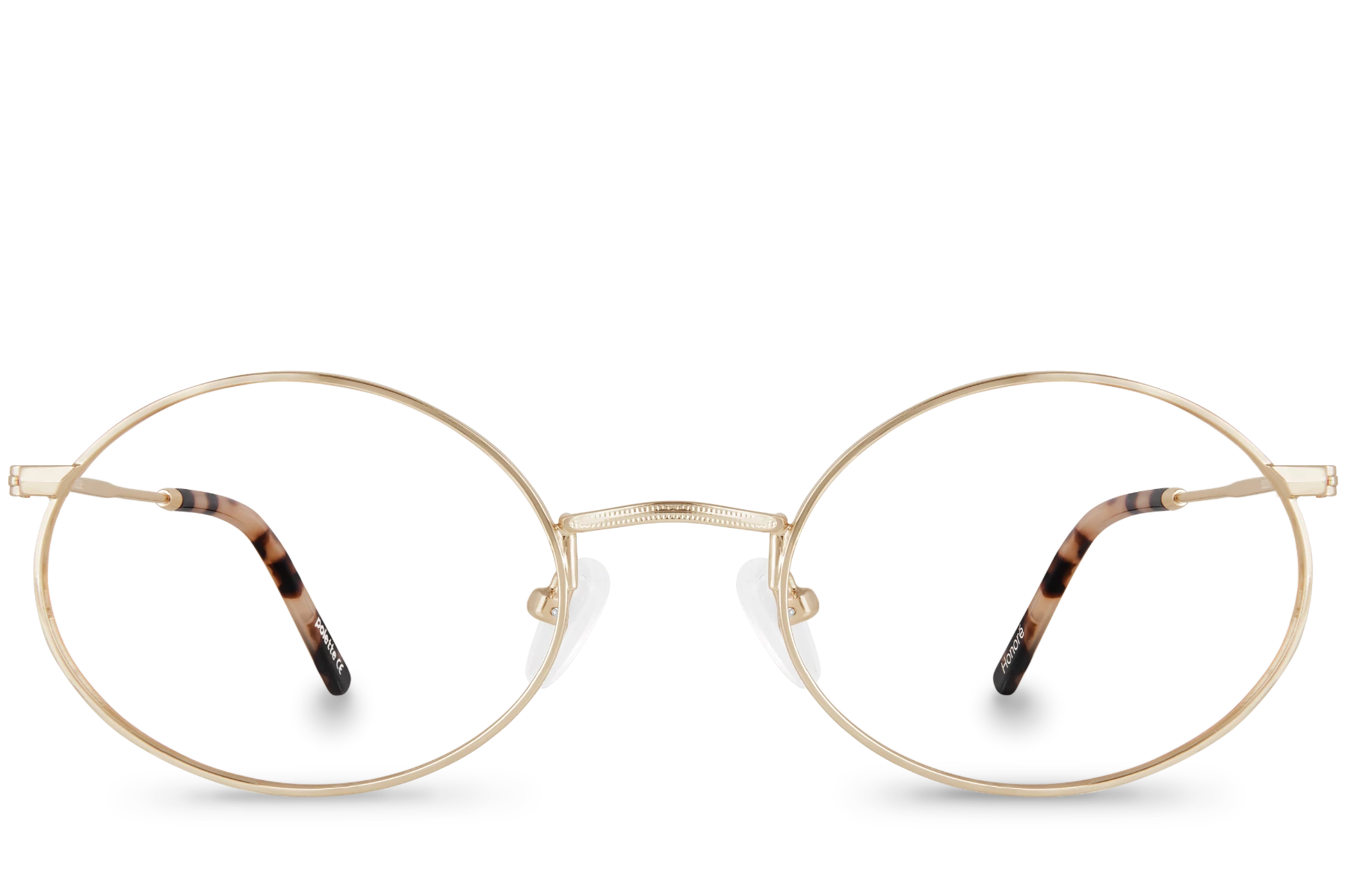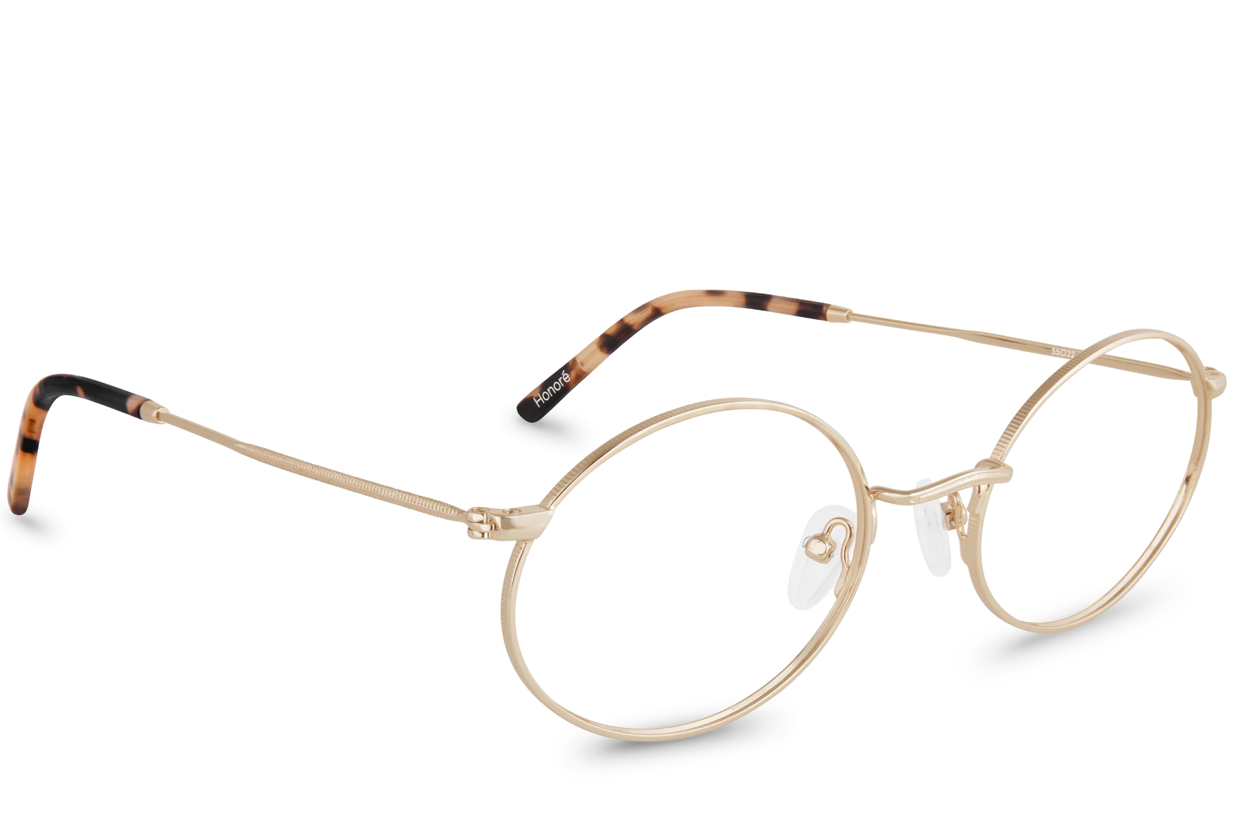 Honoré Gold has a good chance of catching your eye. It’s golden metal sparkles as brightly as your eyes when they catch a glimpse of this pair of glasses with it’s sublime oval shapes. How can you resist it’s wonderful bridge and its tortoiseshell acetate tips? By not resisting it!