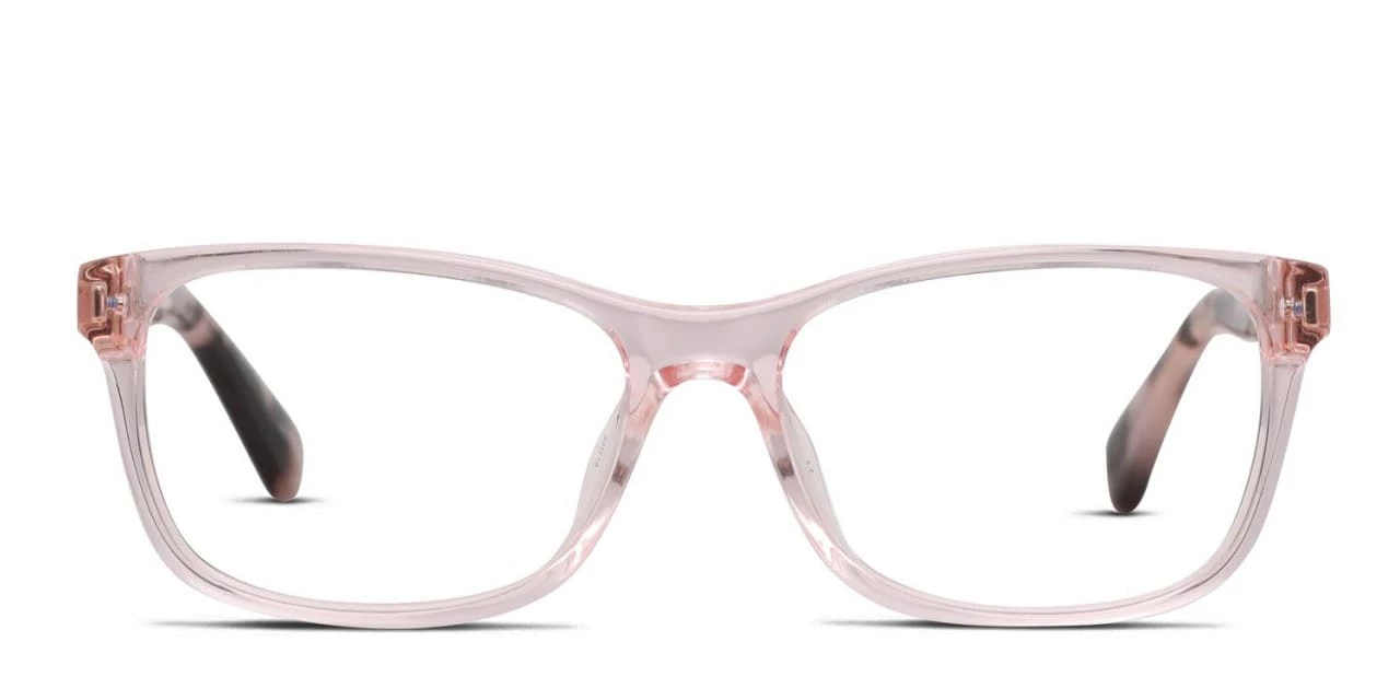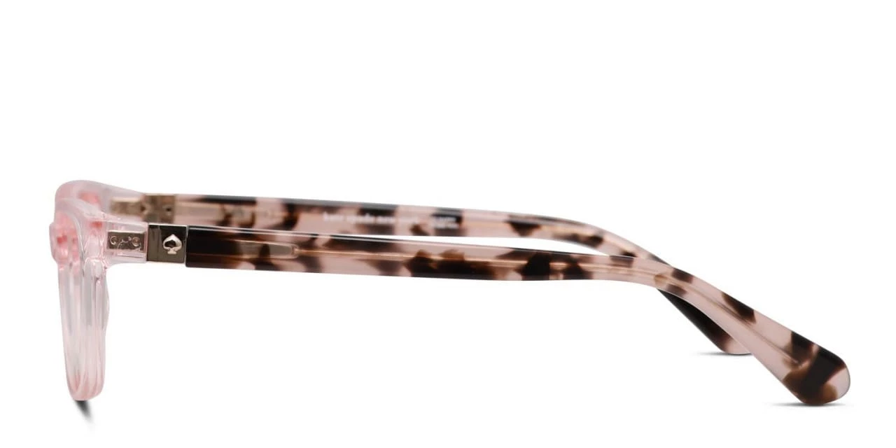 The Kate Spade Calley is a stylish full-rimmed frame with a charming twist of vintage. Crafted from high-grade acetate, it features a trendy translucent hue, wire-core arms, and flashy brand logos for an added splash of designer flair.
