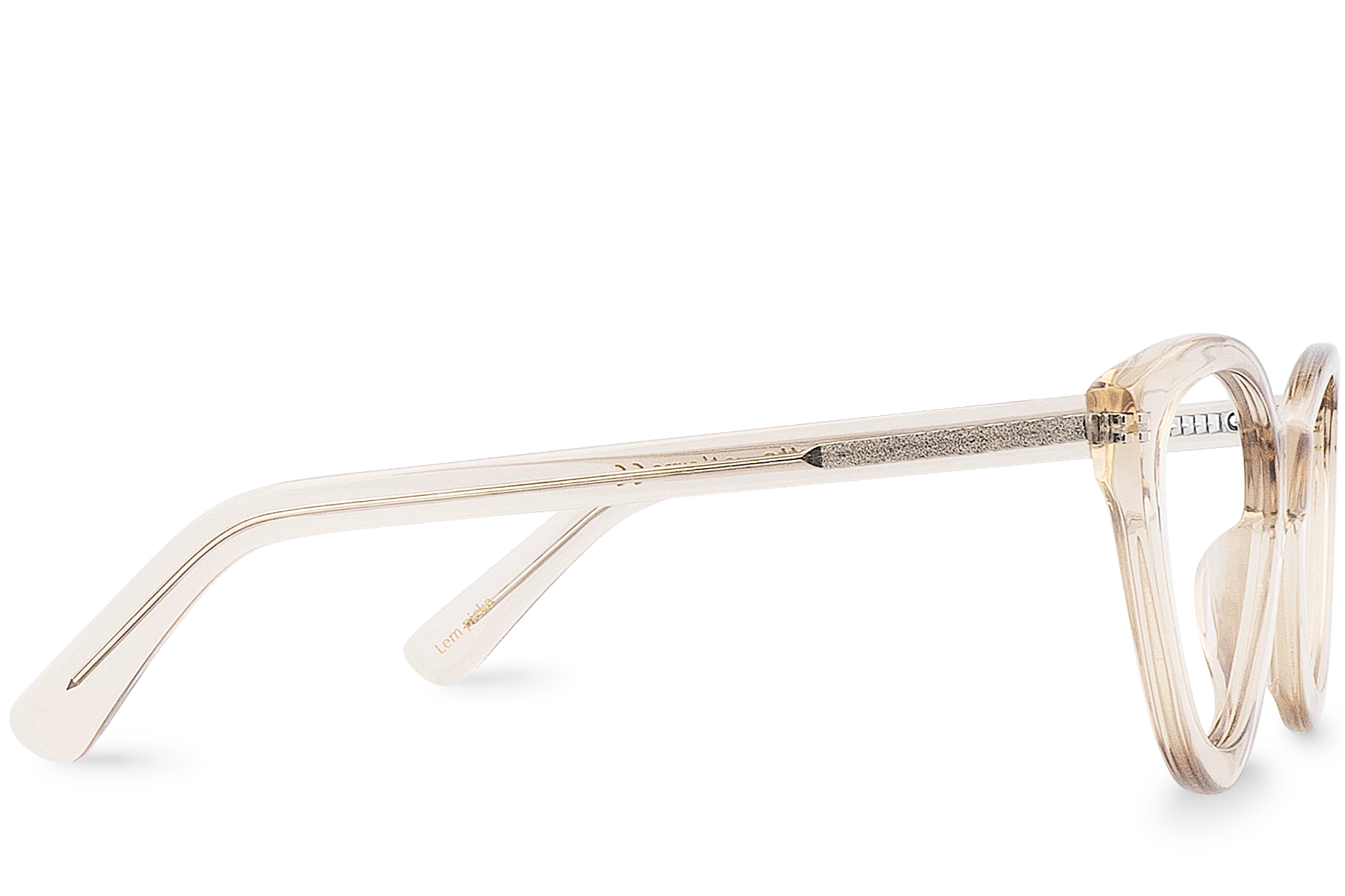 During a visit to an art gallery you draw all eyes to youself. Adored and respected, the beautiful Lempicka demonstrates the know-how of our ateliers. A pair of butterfly shaped glasses with subtle shades of champagne colors.