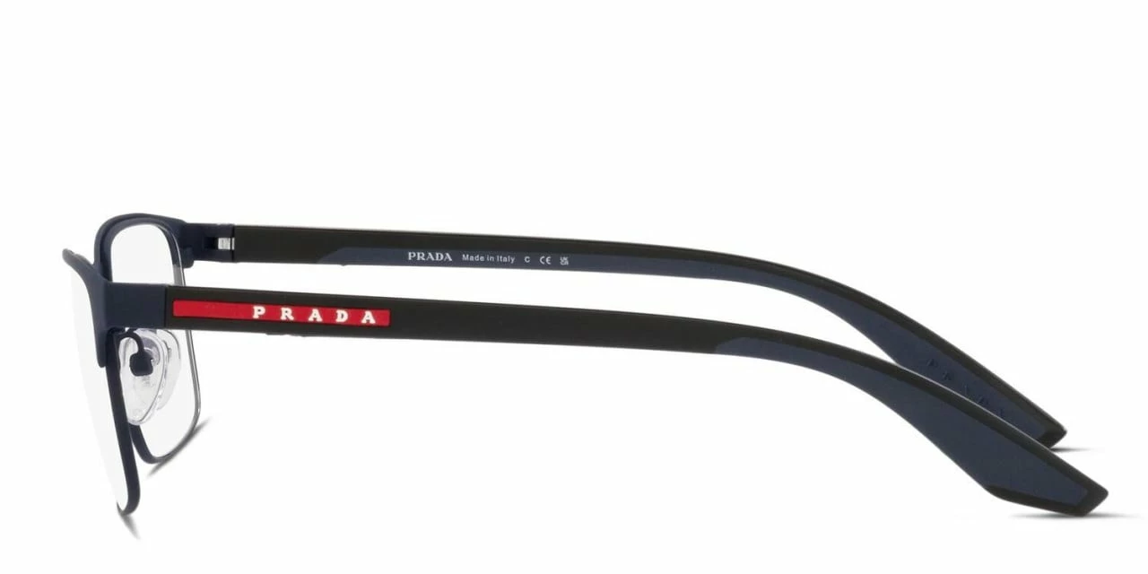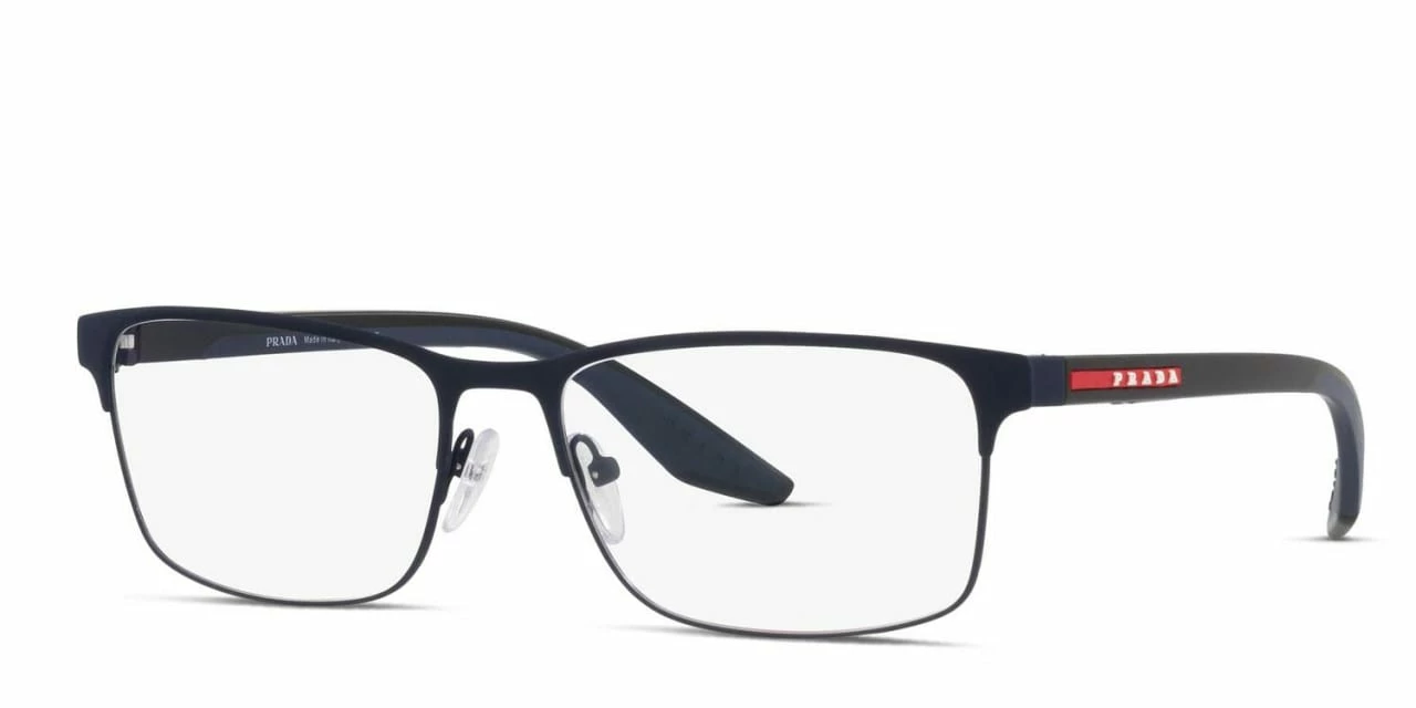 The Prada PS 50PV is a stylish rectangular frame, part of Prada’s more sporty Linea Rossa brand. Crafted from premium grade metal, it features the signature red accents, the embossed brand name on the temple arms, and adjustable nose pads for a snug fit.
